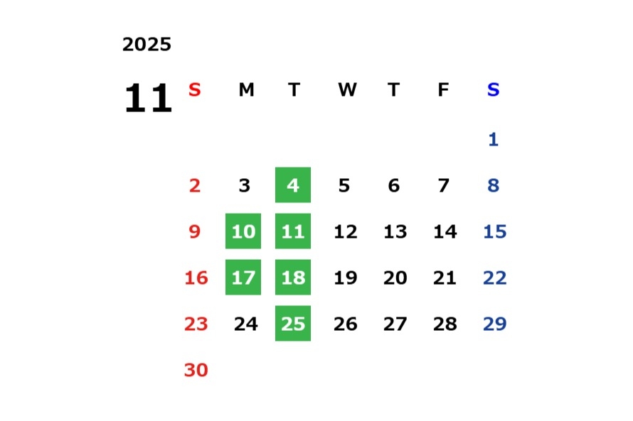 11月の定休日になります。