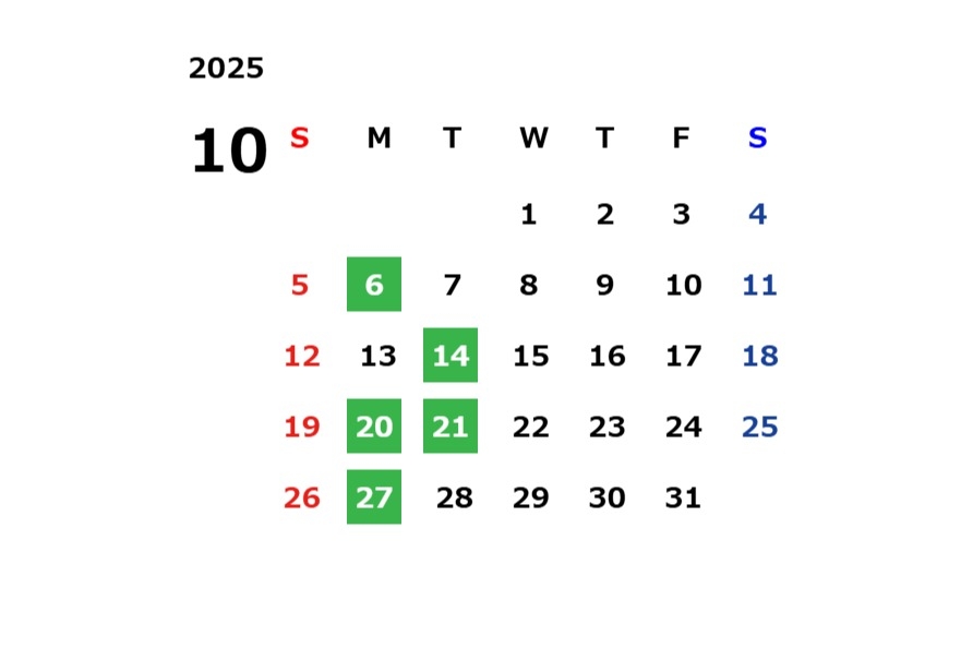 10月定休日のご案内
