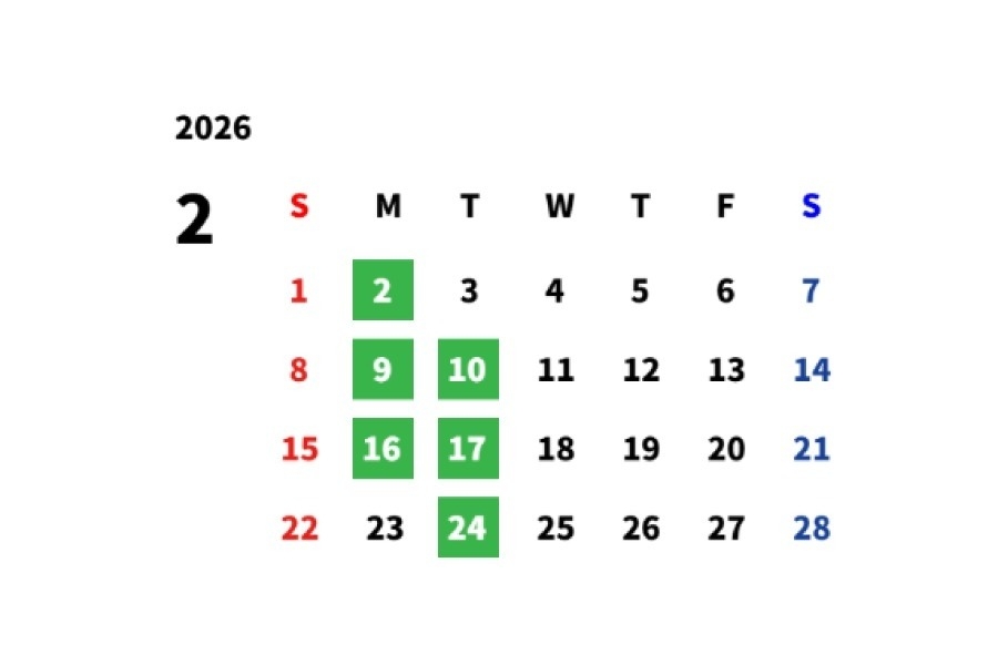 二月定休日のご案内