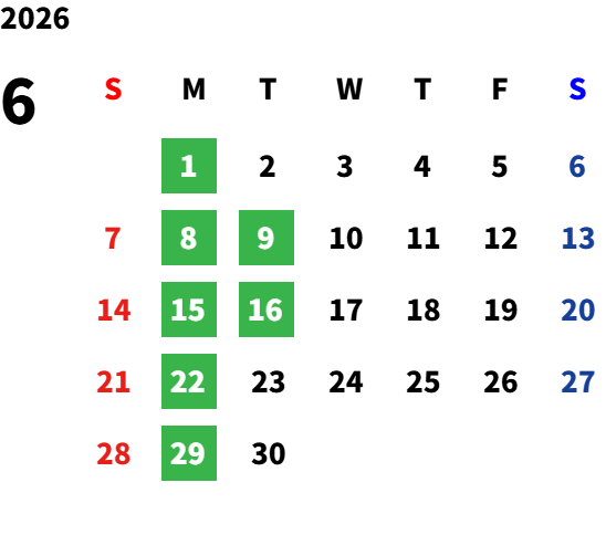詳しくはカレンダーをご確認ください。