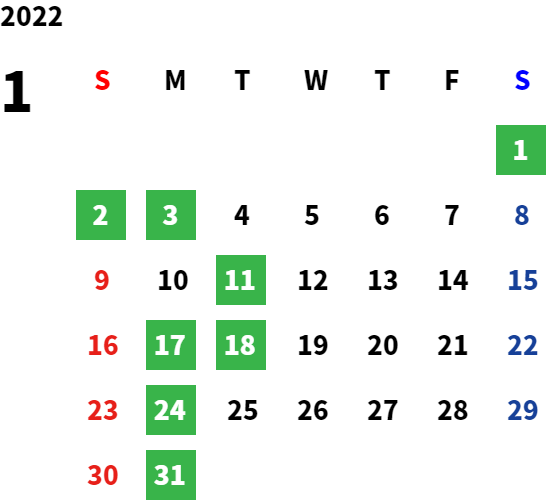 営業日カレンダー