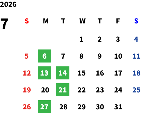 営業日カレンダー