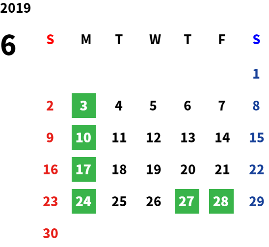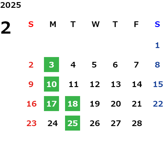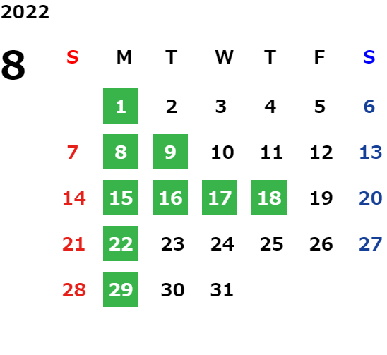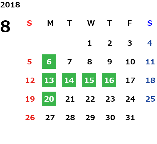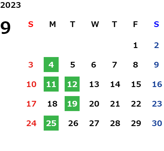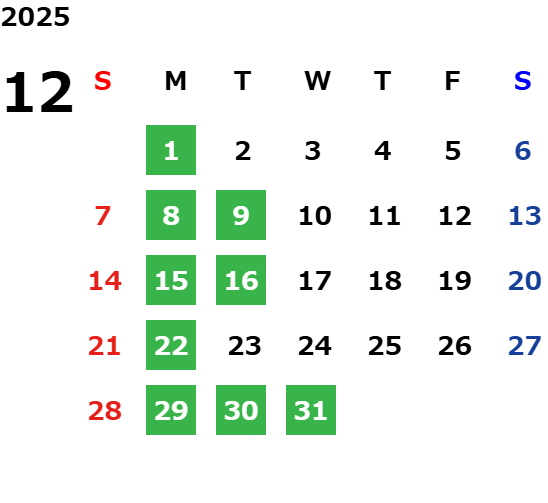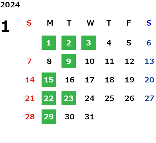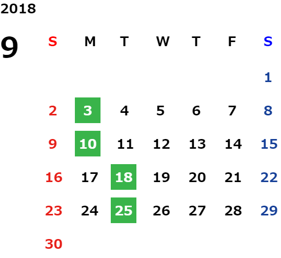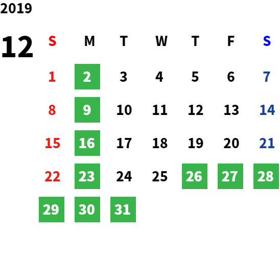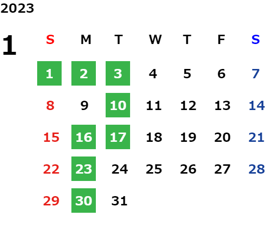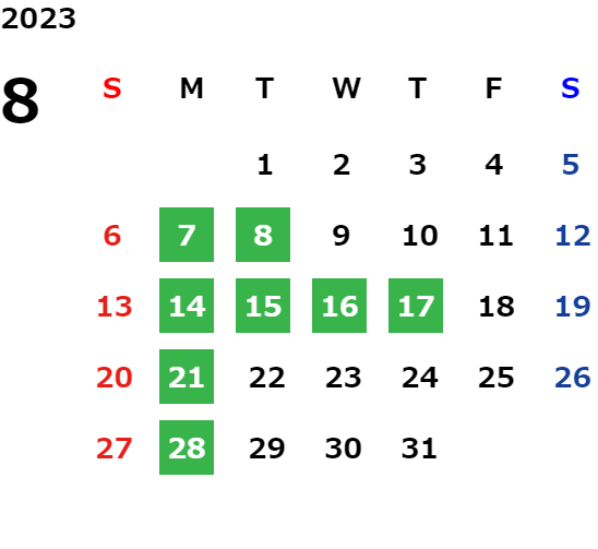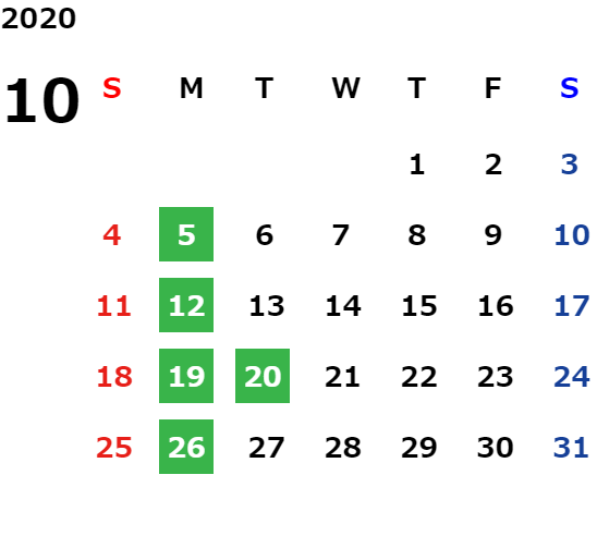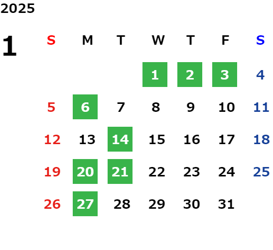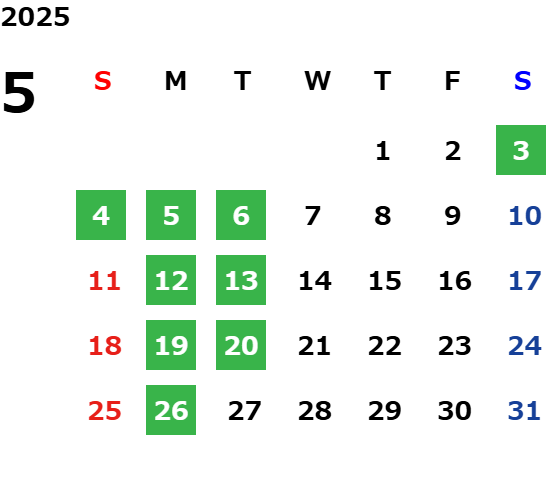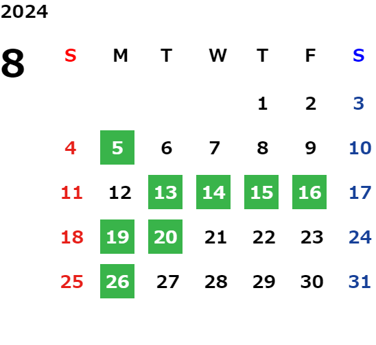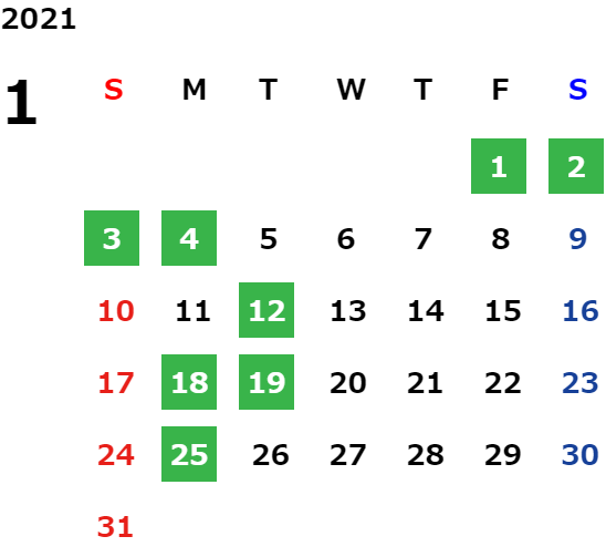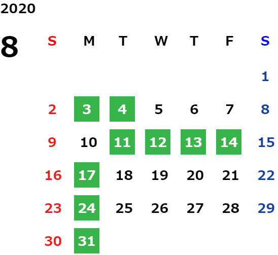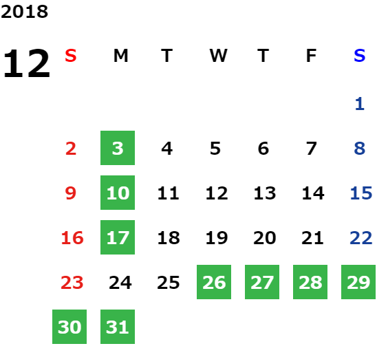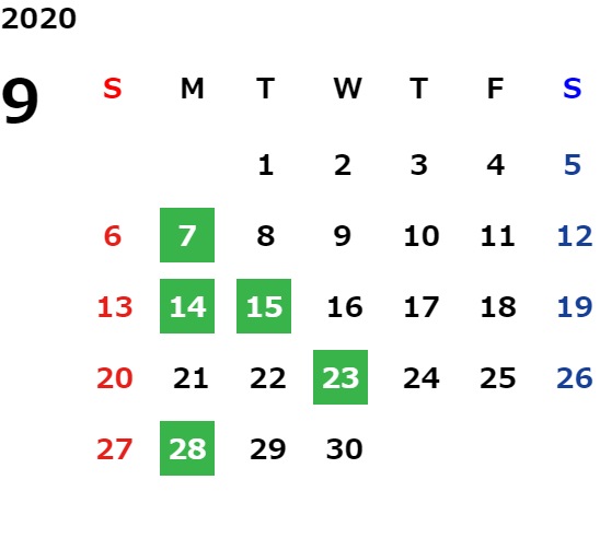 営業日カレンダー