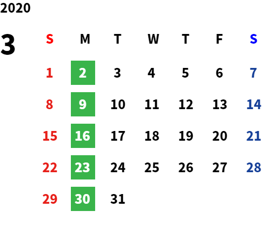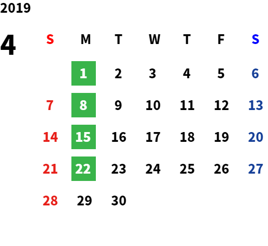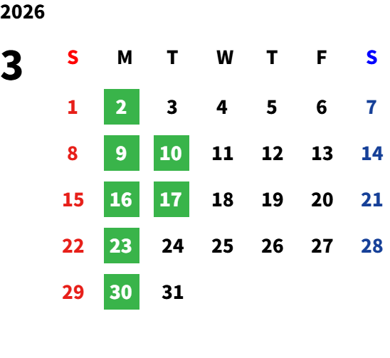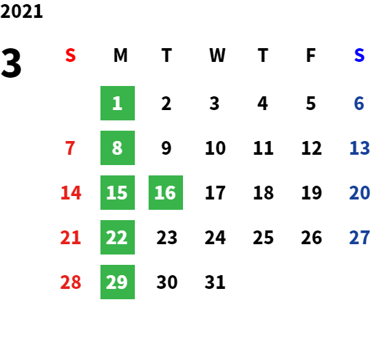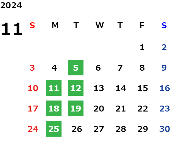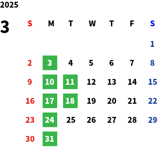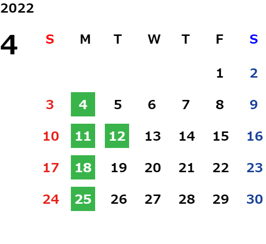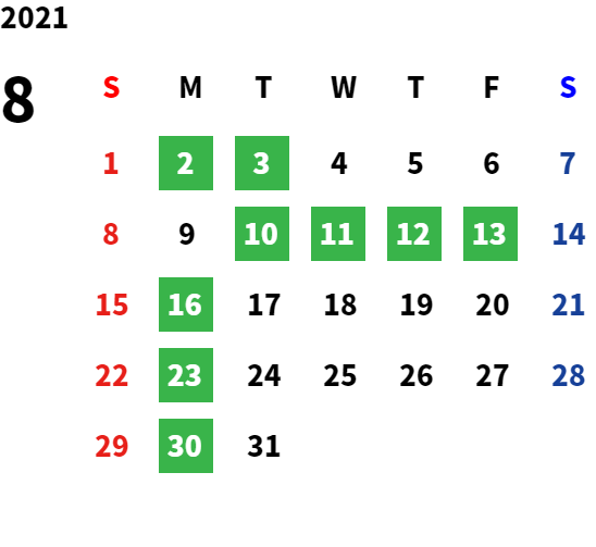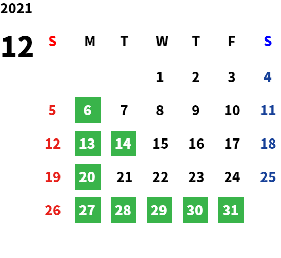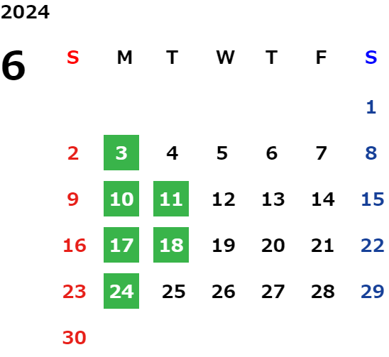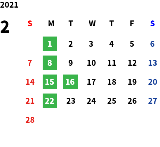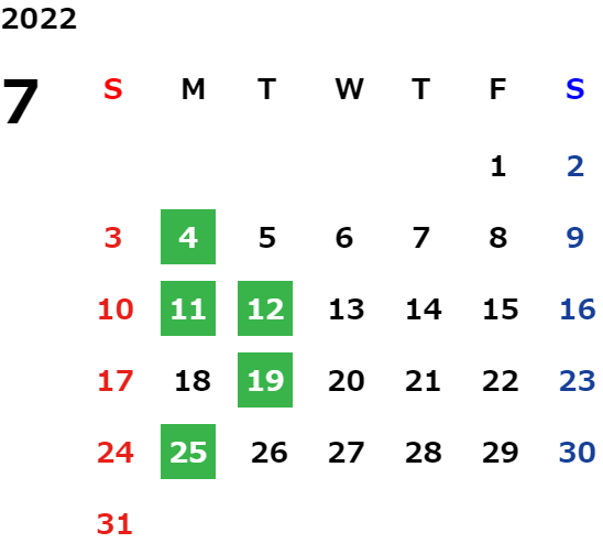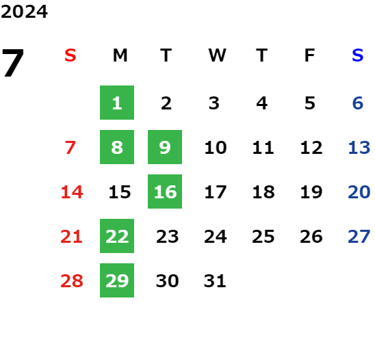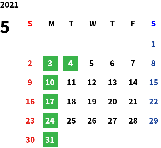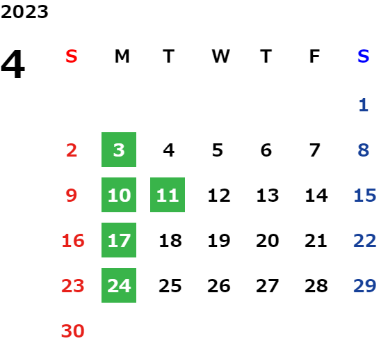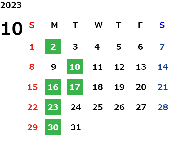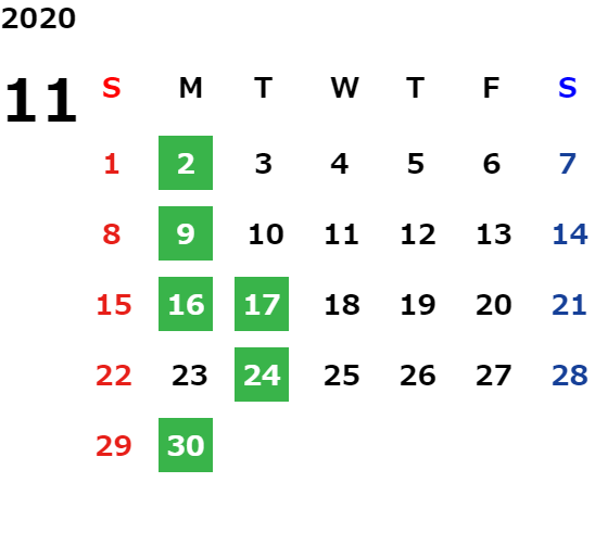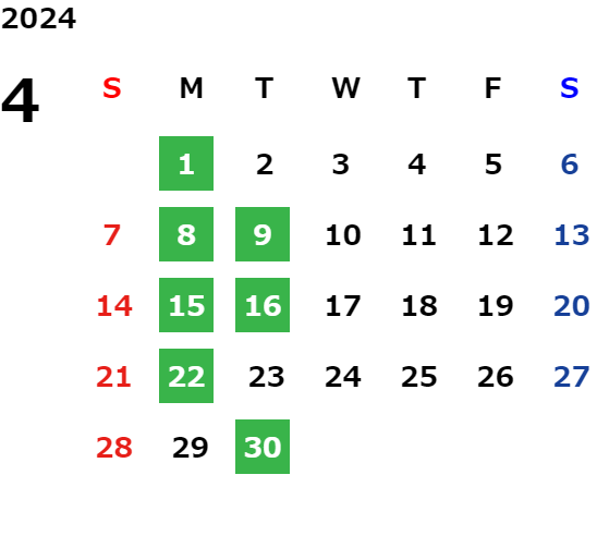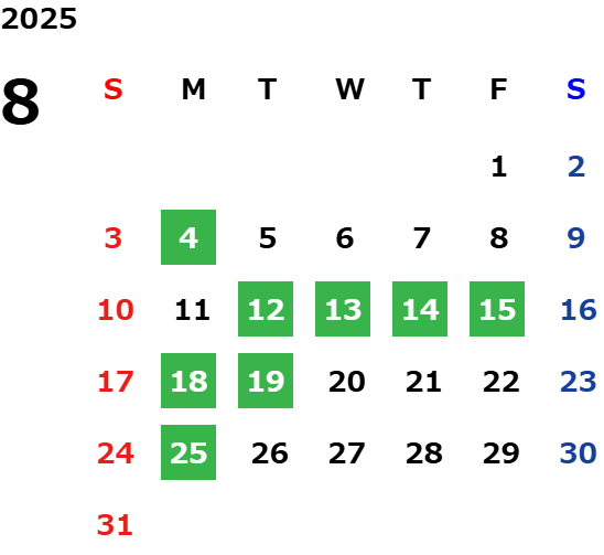 営業日カレンダー